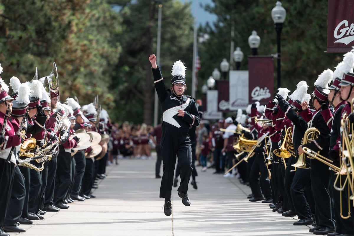 Game day starts about five hours before kickoff, depending on your section. Wearing the uniform and setting up for a morning rehearsal before the game is first, and in the colder months, can be quite painful but memorable, to say the least. After rehearsal, we perform at Griz Walk, where the football players walk to the stadium.